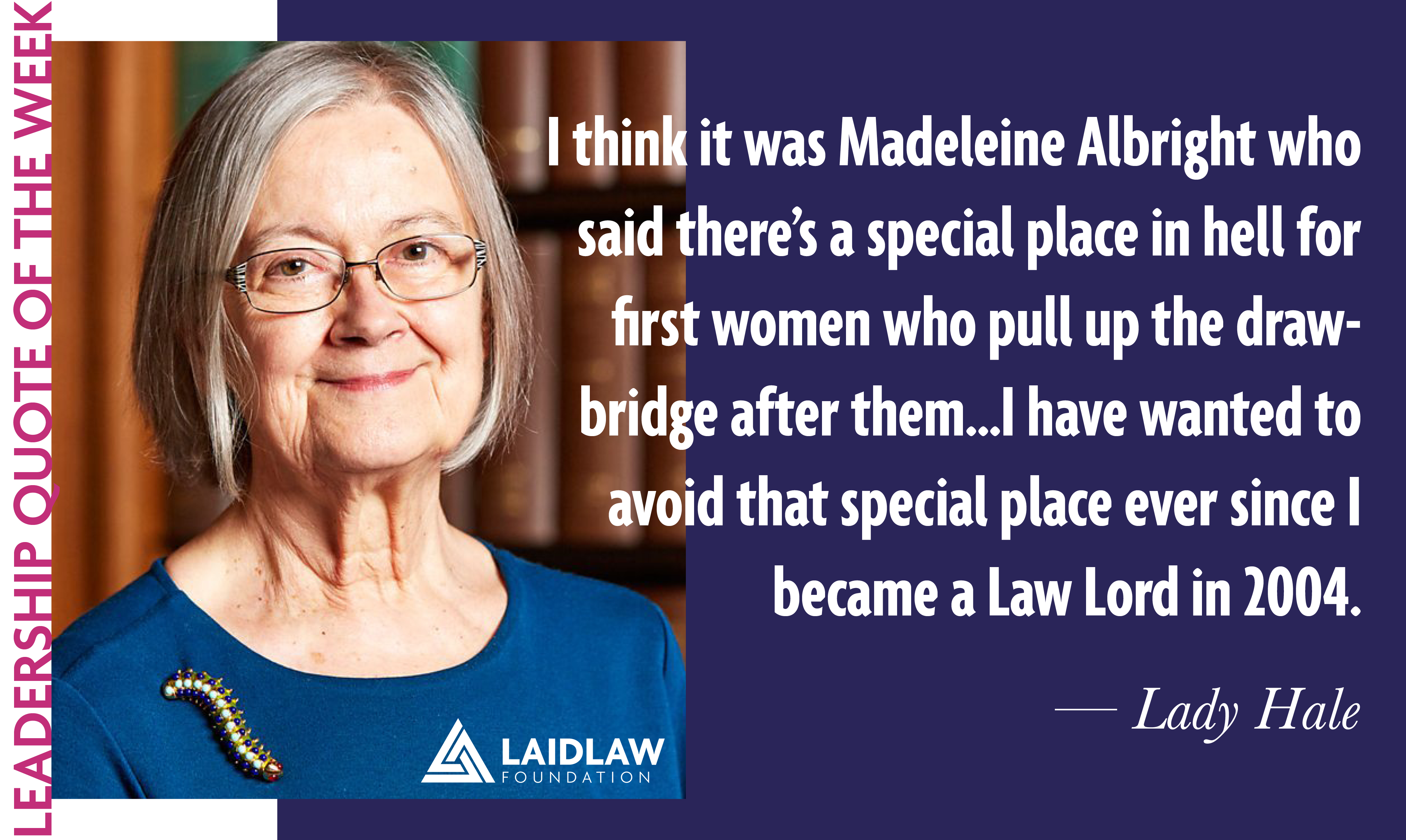"I think it was Madeleine Albright who said there's a special place in hell for first women who pull up the drawbridge after them...I have wanted to avoid that special place ever since I became a Law Lord in 2004."