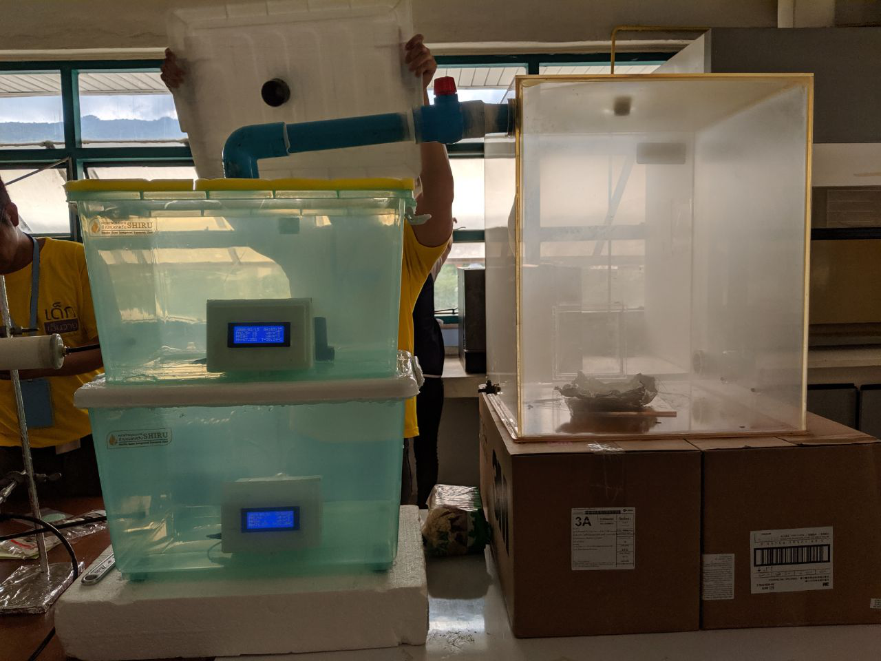 We also had the chance to conduct experiments to see for ourselves how dire the situation is in Chiang Mai. Depicted below is one of the experiments we experienced, which tested the effectiveness of different types of masks at filtering out PM2.5 particles. Only the N95 mask seemed to be effective at all; surgical masks were completely ineffective.