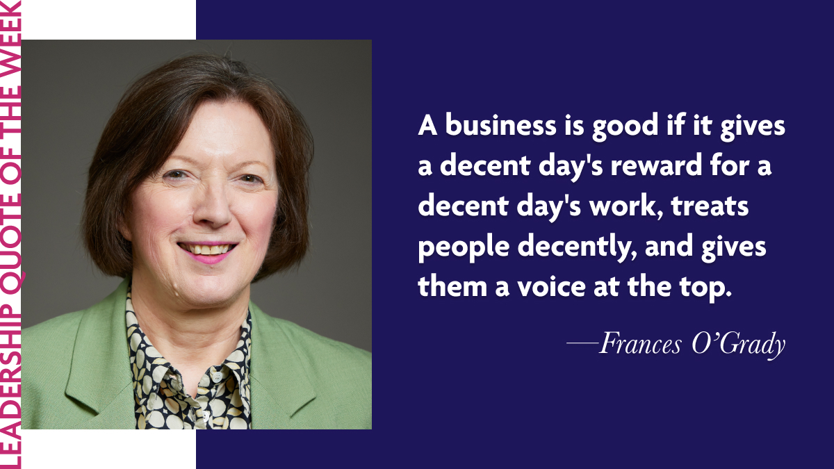 In commemoration of International Workers' Day last week, we highlight the words of trade unionist and campaign worker Frances O'Grady. O'Grady was General Secretary of the Trades Union Congress (TUC) from 2013 until 2022, notably the first woman to hold this title. This week, we reflect on O'Grady's perspective on the importance of ethical leadership within organisations, and the significance of diverse input: