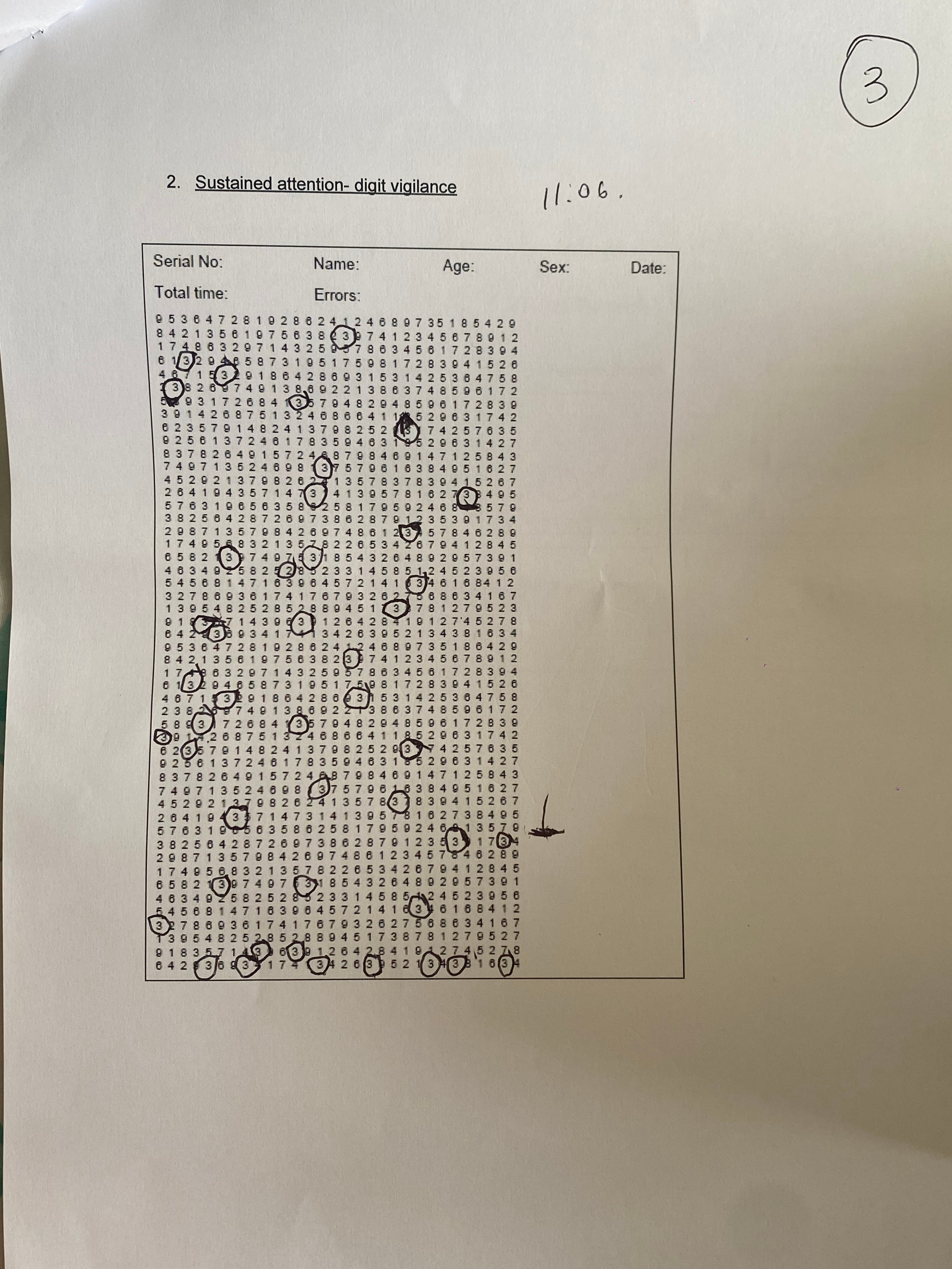 Figure 1: Maya’s sustained attention task with the number 3