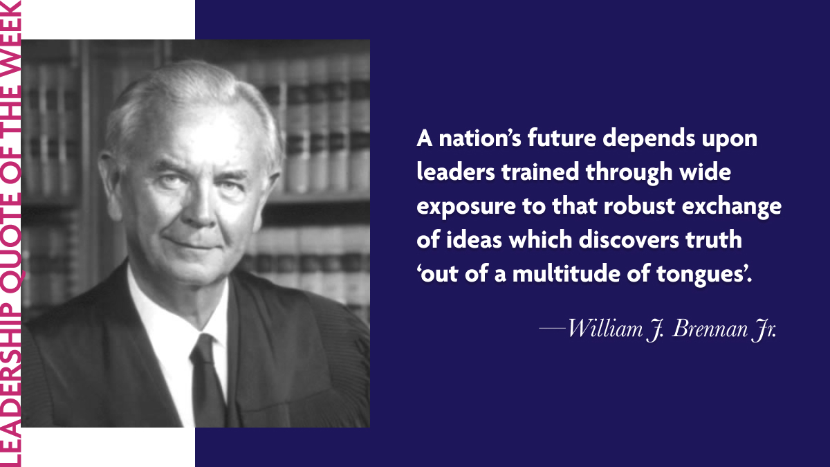 A nation’s future depends upon leaders trained through wide exposure to that robust exchange of ideas which discovers truth ‘out of a multitude of tongues’.