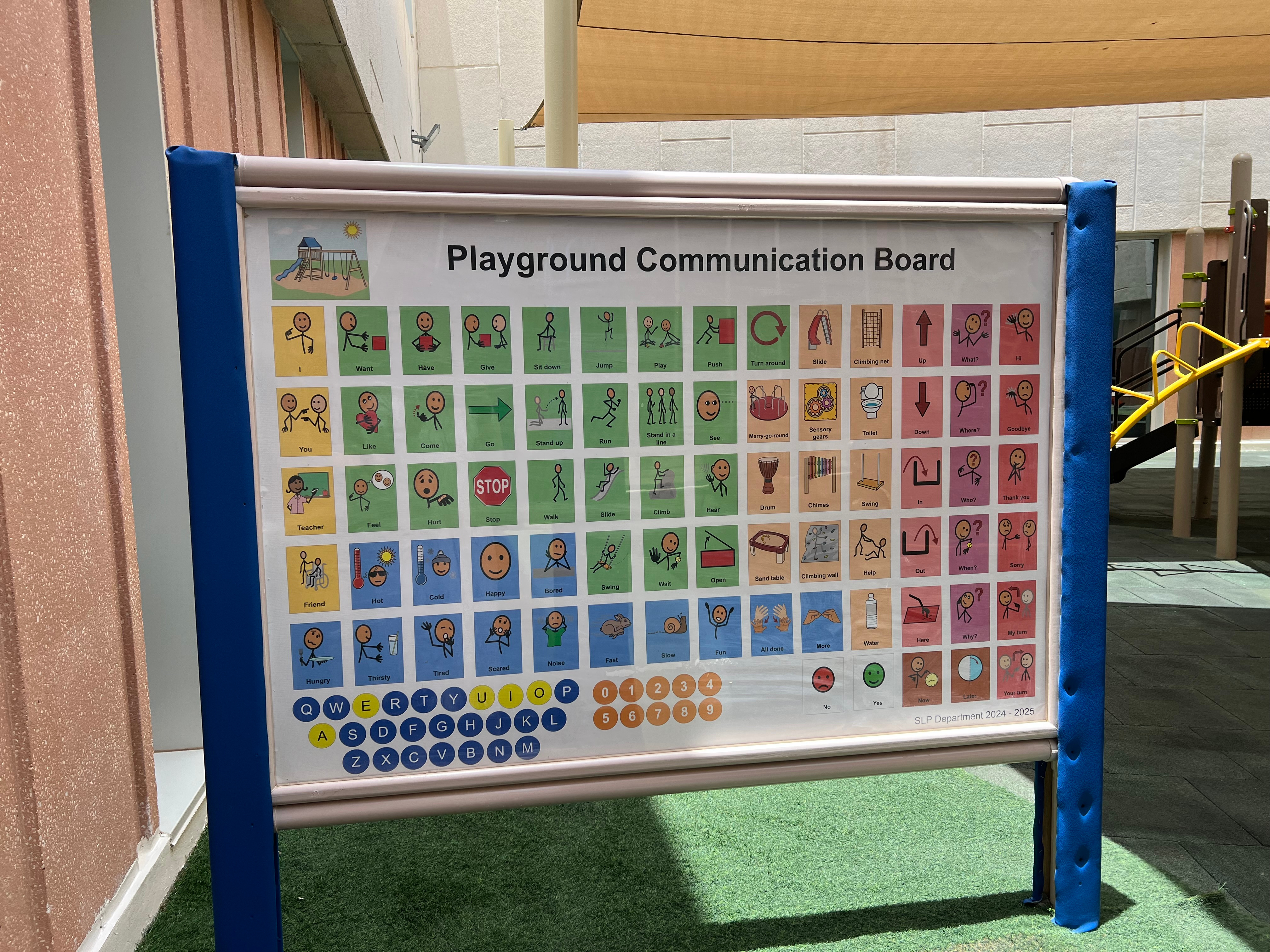 Scattered around the campus, there are communication boards for students who struggle to use their words and express their needs.