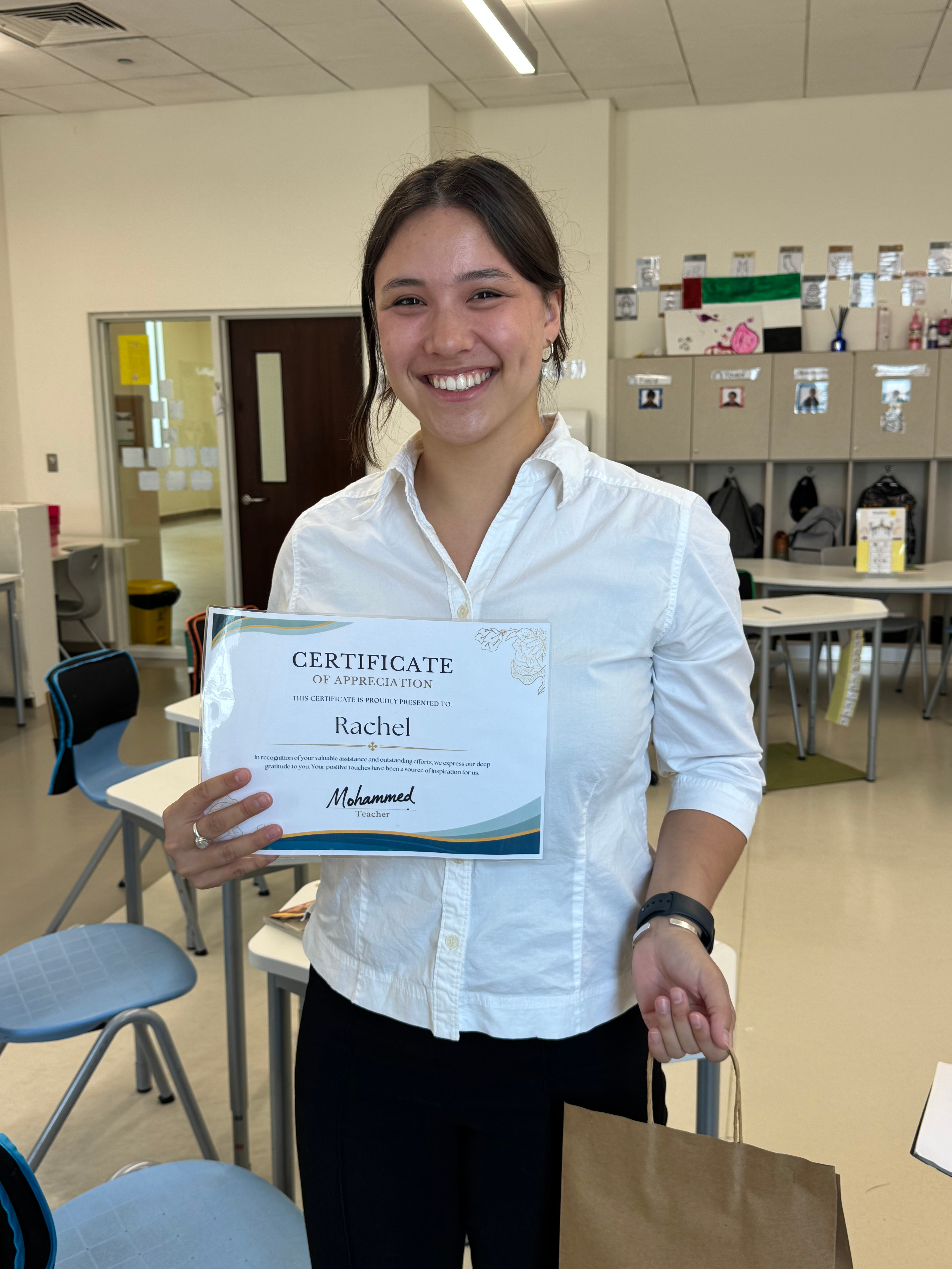 One of the teachers, Mohammed, gave me a certificate of appreciation and a gift. My heart is so full.