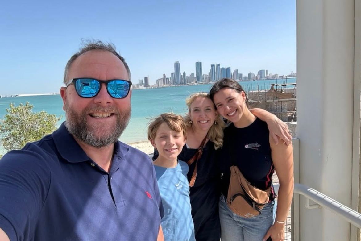 Lastly, here's me with my host family on the weekend. We spent it by the Persian Gulf!