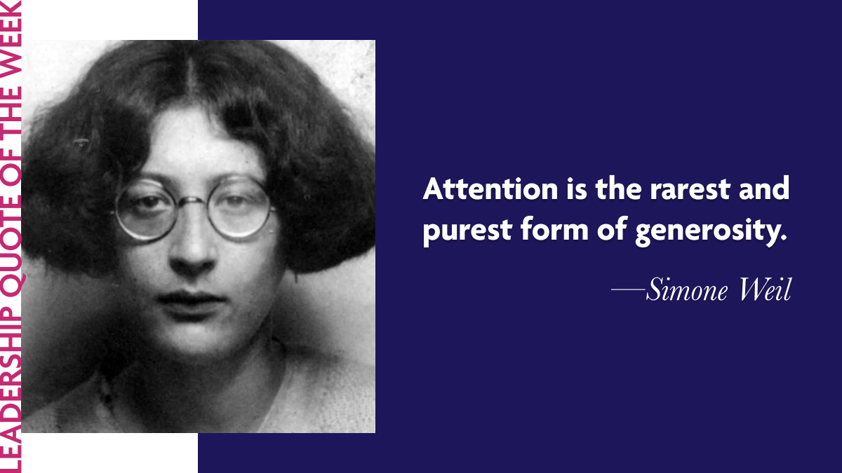 This week, we reflect on Weil's perspective on attention as the highest form of generosity for leaders: