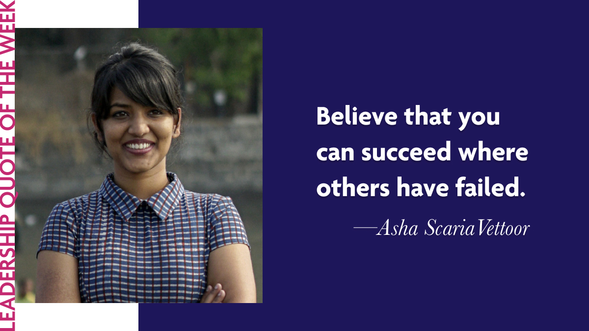 To continue our celebration of Women's History Month, our leadership quote this week comes from social entrepreneur and Laidlaw Scholar alum Asha Scaria Vettoor, founder of Swara.