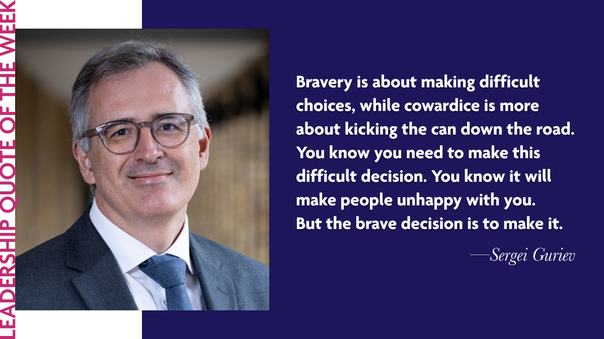 This week’s quote comes from the latest Leadership Lab interview with Professor Sergei Guriev, Dean of London Business School. In his quote, Professor Guriev discusses what it means to be truly brave: