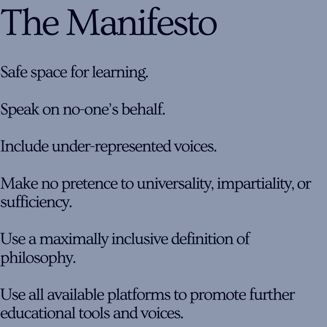 Throughout the launch, I will share the manifesto's details, the commitments of which inform underpin the podcast.