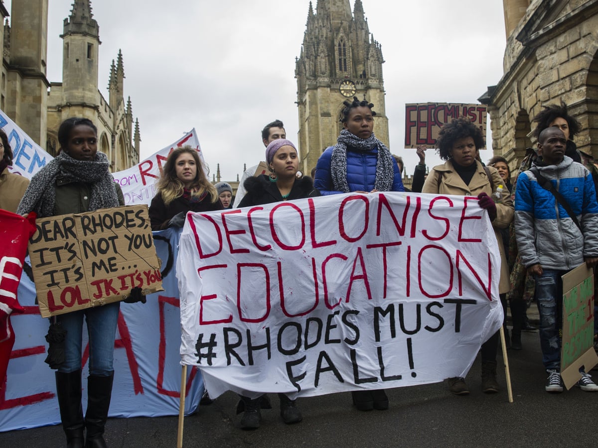 A March 2016 protest at the University of Oxford calling for the removal of a Statue of Cecil Rhodes and for the decolonisation of Education. (Image Credits to David Hartley/REX/Shutterstock.)