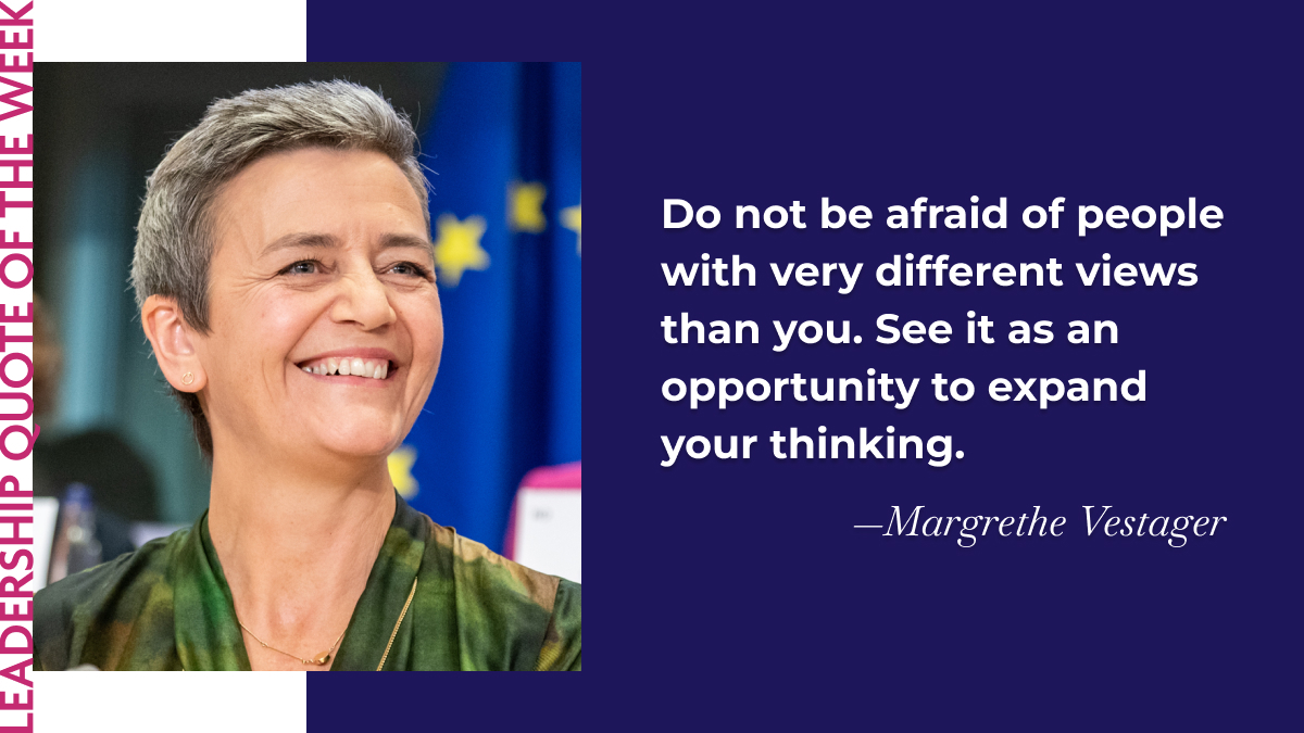 Margrethe Vestager's words remind us of the power of embracing differing opinions. It's a call to see the variety of perspectives not as obstacles but as opportunities to broaden our minds and enrich our decisions. Let's take this advice to heart, inviting diverse views into our conversations and allowing them to challenge and inspire us. Here's to growing through openness and building a world of more inclusive and innovative leadership.