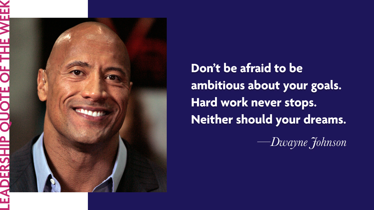 Reflecting on this week's quote, remember that being ambitious and working hard is essential to leadership. Don’t shy away from your dreams. Embrace them, work towards them every day, and use your ambitions to positively impact the world.