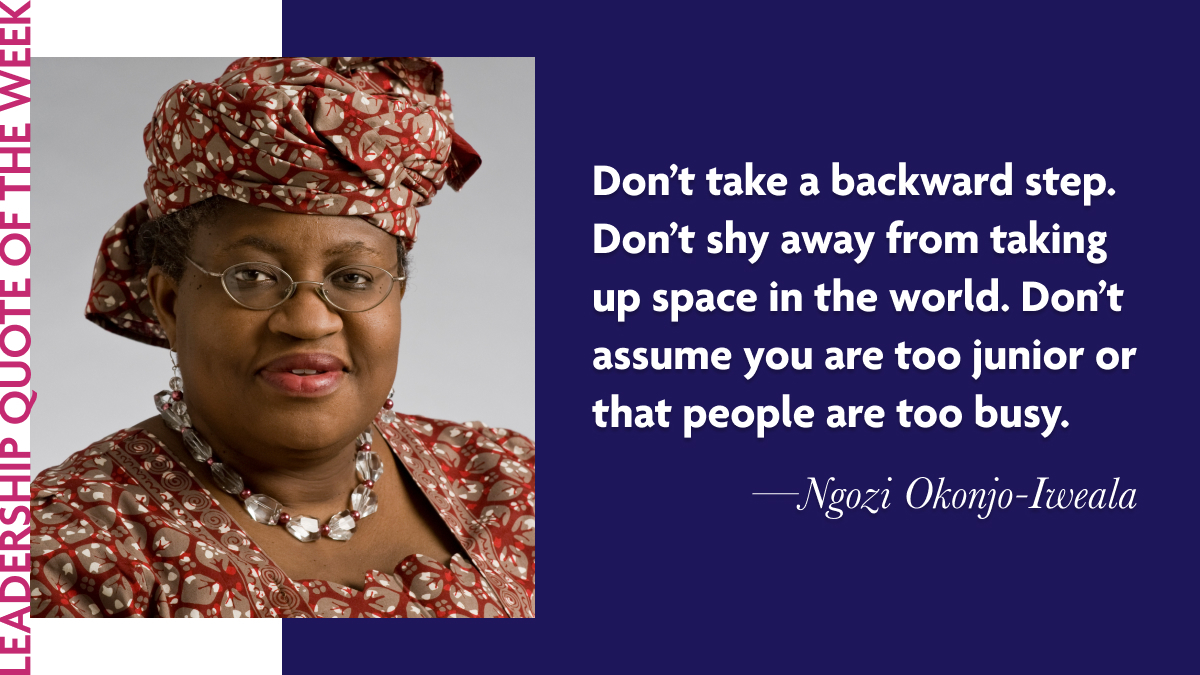 This week, we reflect on Okonjo-Iweala's perspective on the importance of asserting oneself and not being afraid to take up space: