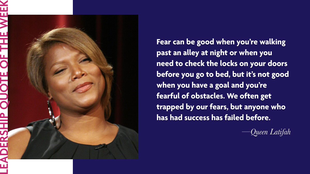 In the realm of leadership, Queen Latifah's words resonate powerfully. She reminds us that fear, while it can serve as a protective instinct, should never deter us from pursuing our goals and dreams.