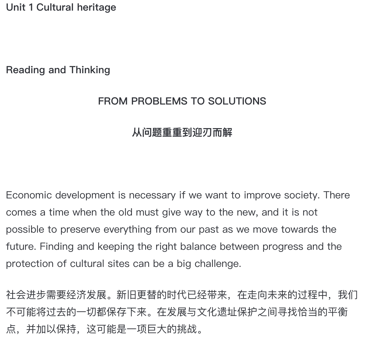 Comparatively, English textbooks geared towards learners of other languages often focus more on political, economic, and academic topics. Take, for example, this bilingual "课文" (lesson text) geared towards Chinese high school students learning English: