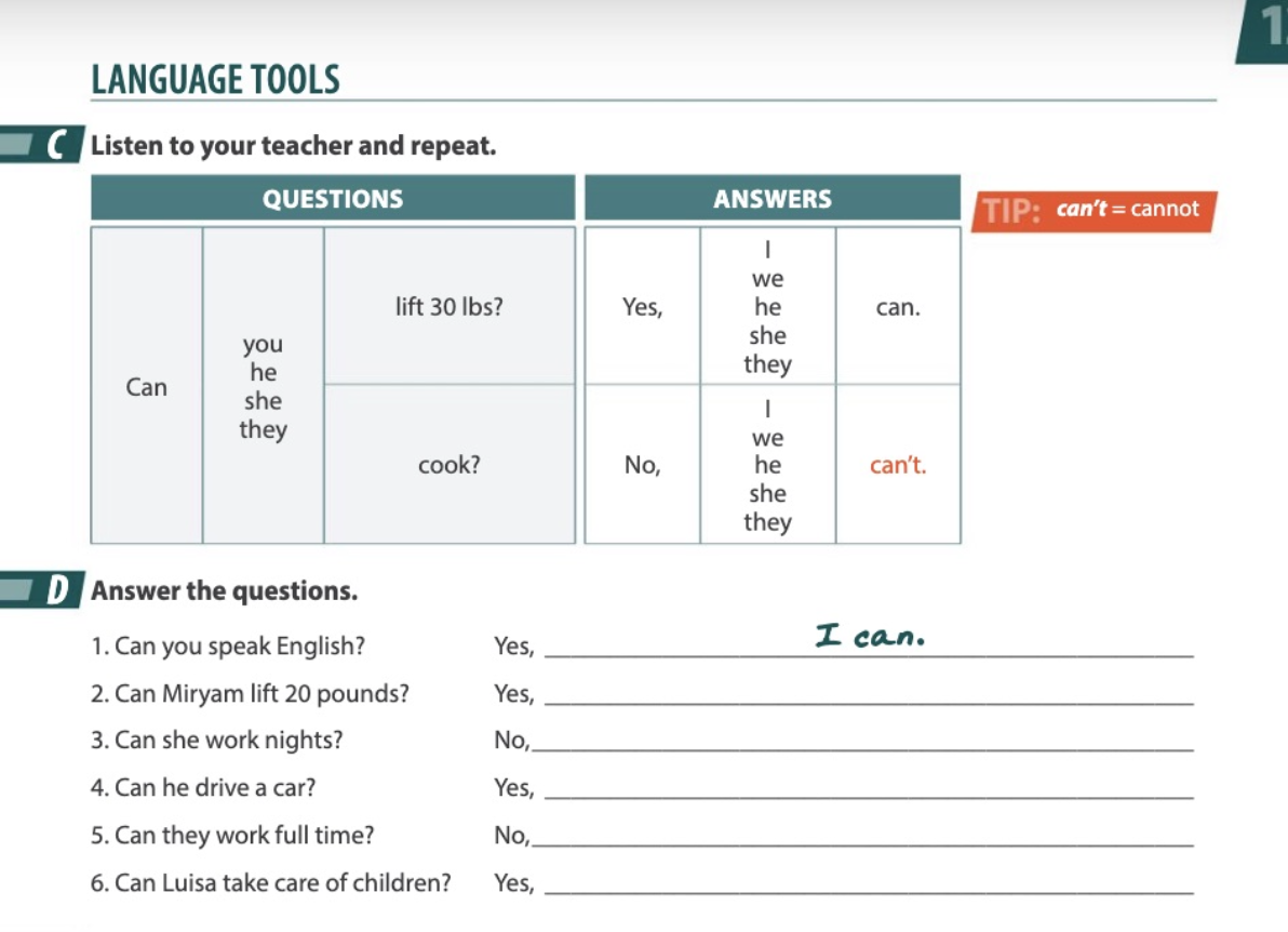 I haven't changed the scope or focus of my topic since I began this project, but it has given me a lot of fresh ideas of research avenues to pursue after this. As I was going through pedagogical materials by other major publishers and educational institutions, I kept coming across extremely "valenced" coursework—for example, English textbooks geared towards native Spanish speakers often had lessons centered around the language in applications for manual labor jobs, with questions such as "can you lift 30 pounds?" making their way verbatim into the grammar lessons. Attached is a photo of a portion of Lesson 1.L.12 in the Intercambio textbook—an English textbook geared towards Latin American immigrants: