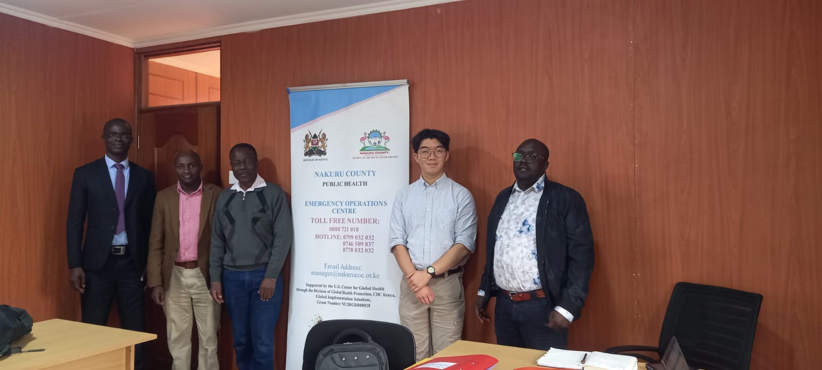 Below: Me, Dr. Jack Nyamongo, and the Nakuru County PHEOC staff.