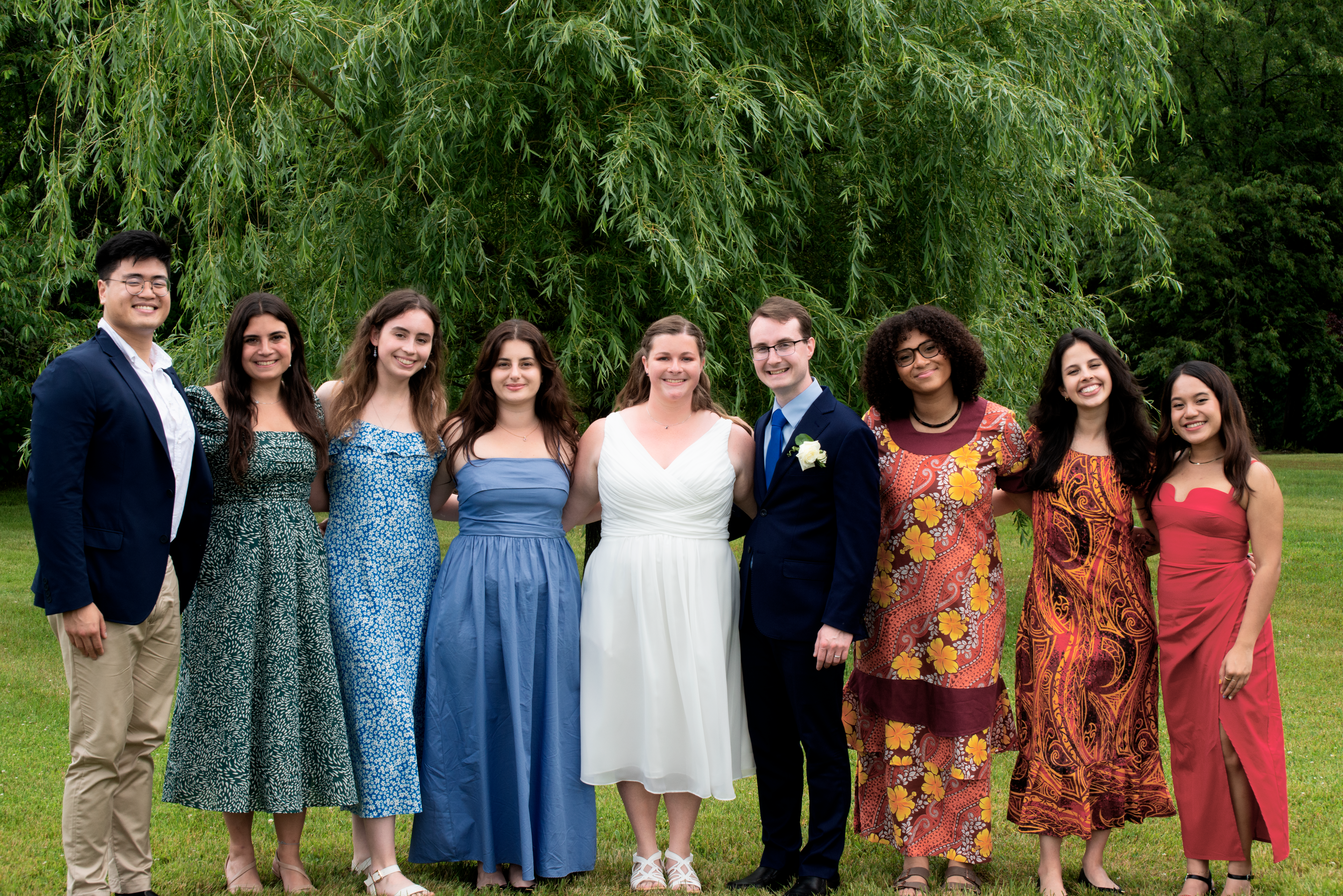 Friends traveled from near and far to attend my wedding in Massachusetts, USA. In the picture from left to right: Robert and Irene from Tufts, Lydia from York, Ipek from Durham, me, my husband, Lauren from UCL, Ana from St. Andrews, and Angel from Colombia.