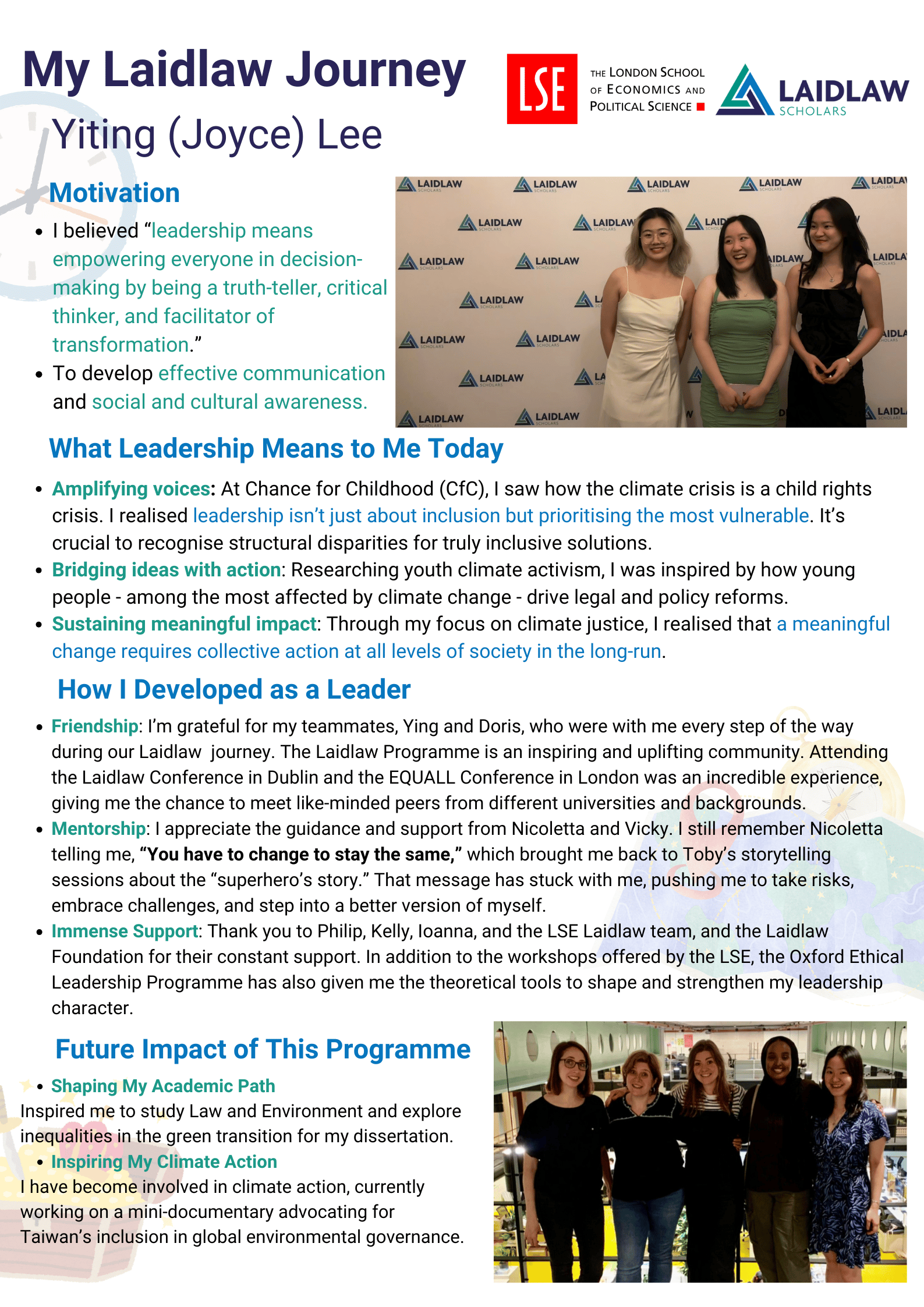 Reflecting on my Laidlaw leadership journey, I created this poster as a way to look back on how I’ve grown. Comparing myself to who I was two years ago, I see how my understanding of leadership has deepened, and I’m now ready to carry forward everything this programme has given me into the future.