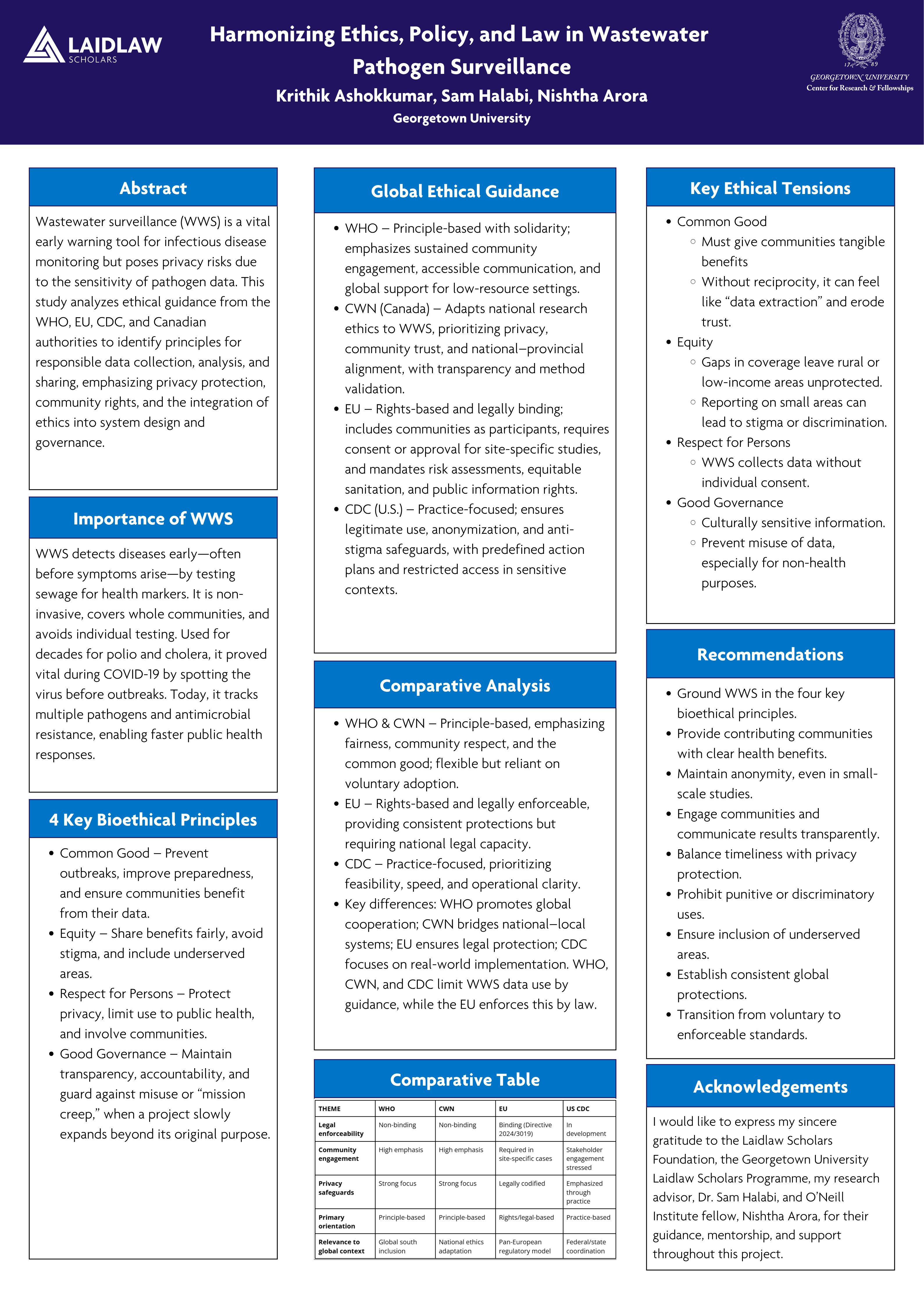 Harmonizing Ethics, Policy, and Law in Wastewater Pathogen Surveillance (Research Poster)