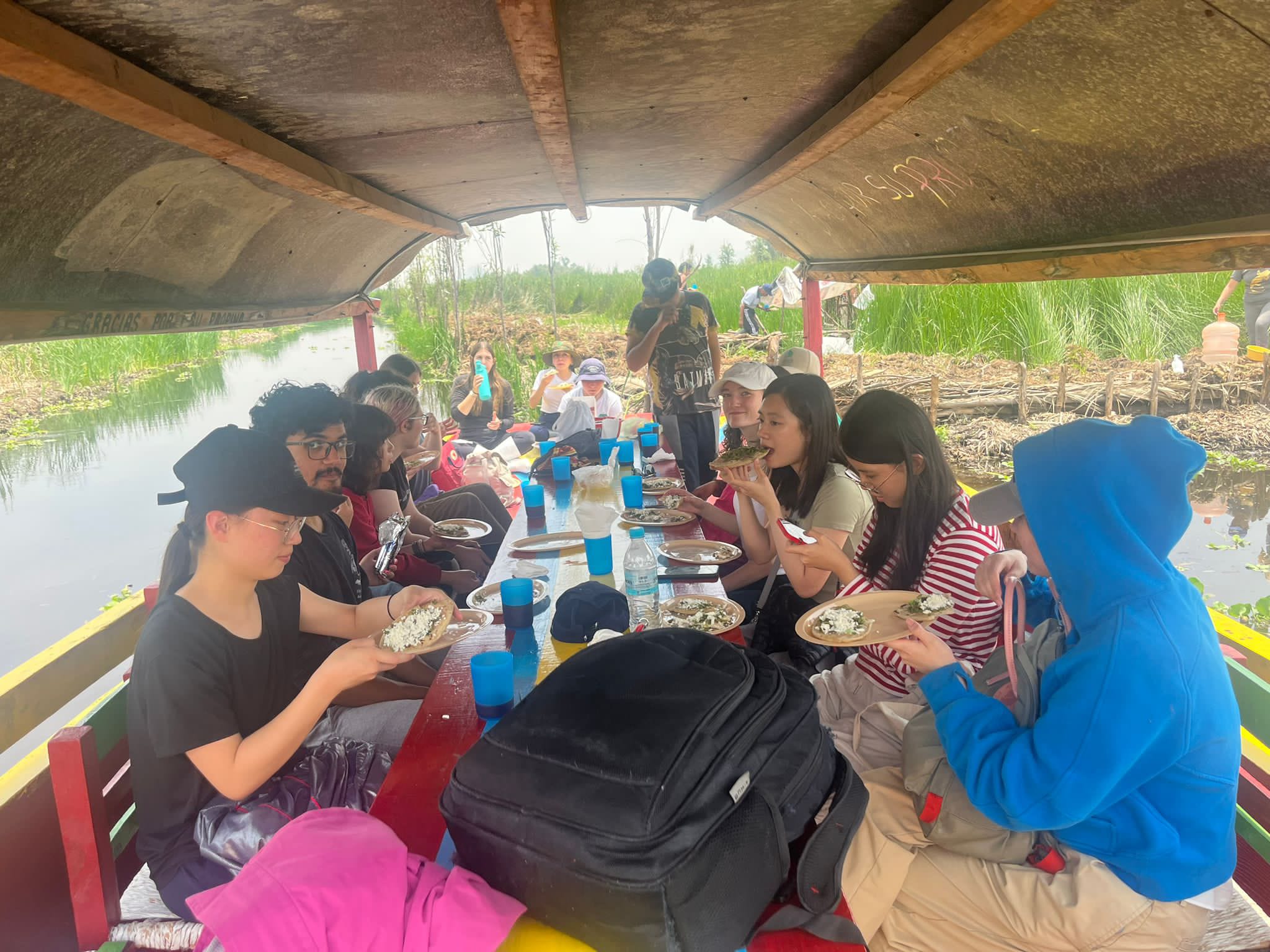 This week involved a visit to Xochimilco, where we learnt about the Chinampas, floating gardens that are made by layering soil, sediment, and decaying vegetation, forming a fertile area for cultivating crops. It was wonderful that we even got to experience building a chinampa, all the scholars in a team effort. On our boats, we enjoyed some nice homemade Tlacoyas as we floated along to visit the Axolotarium, where the critically endangered Axolotl are conserved. Our guide explained to us that the species became threatened when the MX govt decided to introduce ornamental fish ahead of hosting the Olympics, and the invasive species displaces the Axolotl which is why they now need to be conserved. In my own little research following, I found that the rapid pollution of their wild habitat through the introduction of human waste and industrial effluents was the leading reason for their endangered status.
