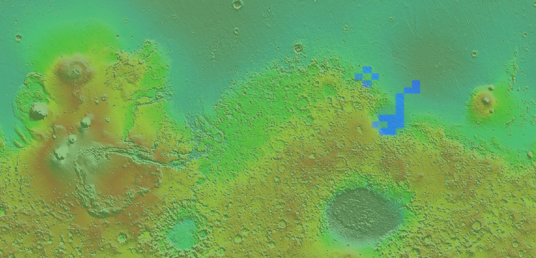 A figure of modern martian terrain with habitability during the noachian period mapped on in blue (better data representation is on its way im just so excited about results) (1)