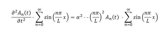 Where An are unique Fourier coefficients computed by performing a fast fourier transform (hence why spectral methods are incredibly fast). The length of the string is denoted by L. Substituting this expression back into the wave equation and simplifying, we get: