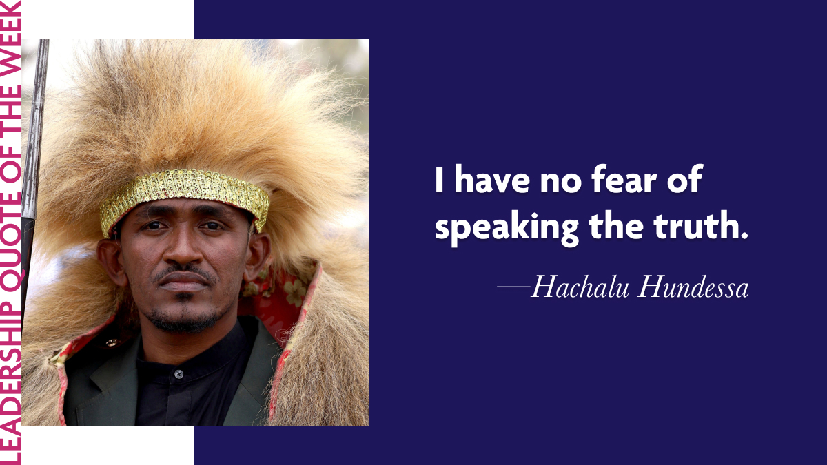Following last week’s Scholar Spotlight with @Brenda Umwali, a Laidlaw Scholar at Cornell University, whose research explored the dual marginalization faced by Oromo women—the largest ethnic group in Ethiopia—this week’s quote from singer and activist Hachalu Hundessa feels especially resonant. Hachalu, also from the Oromo group, reminds us of the courage it takes to be a true leader. His words are simple, yet they carry a weight that resonates deeply, especially in times when speaking the truth feels like an act of bravery.