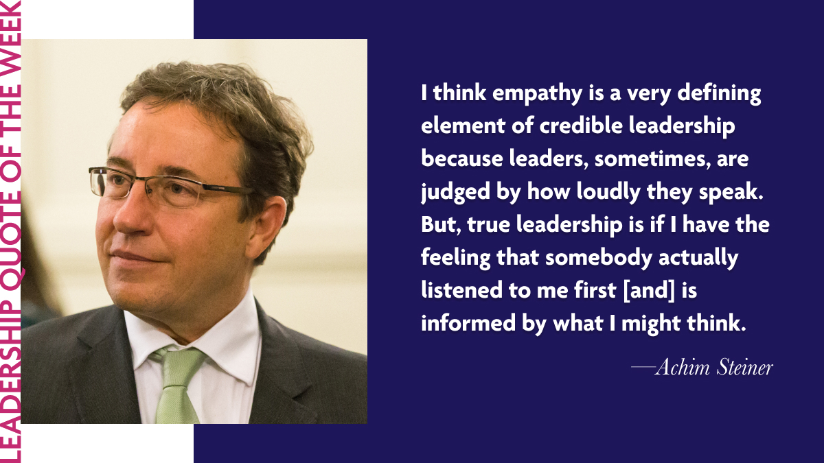 Achim Steiner: “I think empathy is a very defining element of credible leadership because leaders, sometimes, are judged by how loudly they speak. But, true leadership is if I have the feeling that somebody actually listened to me first [and] is informed by what I might think.”