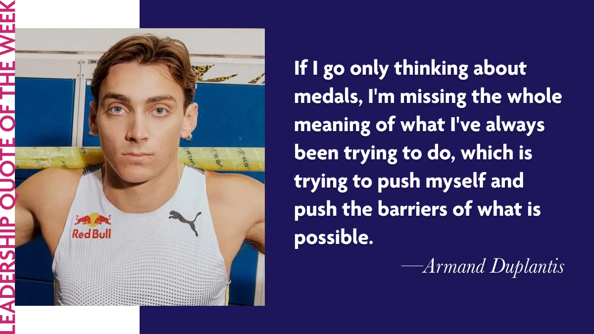 On 7 September 2025, Armand Duplantis stood in Uppsala, his adopted home, and cleared 6.31 metres at his own Mondo Classic event. He was already a two-time Olympic champion and the world record holder. He raised the bar anyway. This week, we reflect on what his words ask of us.