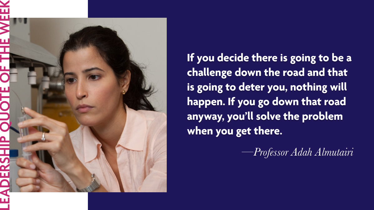 Professor Adah Almutairi: “If you decide there is going to be a challenge down the road and that is going to deter you, nothing will happen. If you go down that road anyway, you’ll solve the problem when you get there.”