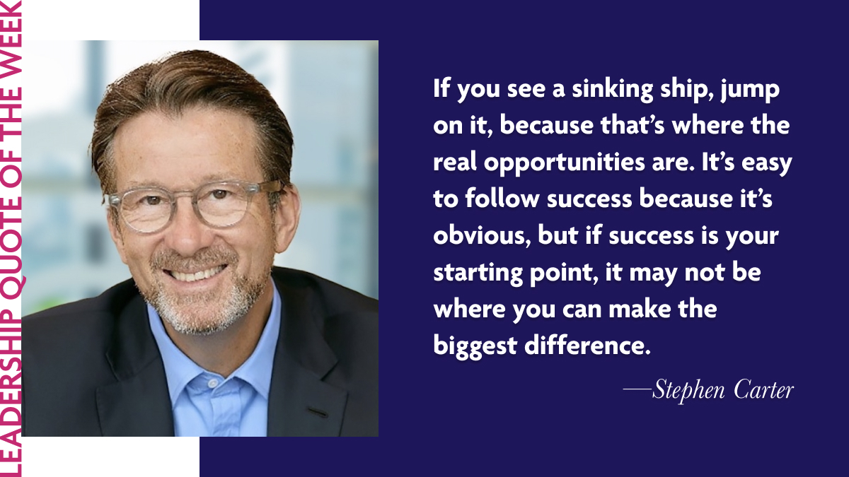 Stephen Carter: "If you see a sinking ship, jump on it, because that's where the real opportunities are. It's easy to follow success because it's obvious, but if success is your starting point, it may not be where you can make the biggest difference."