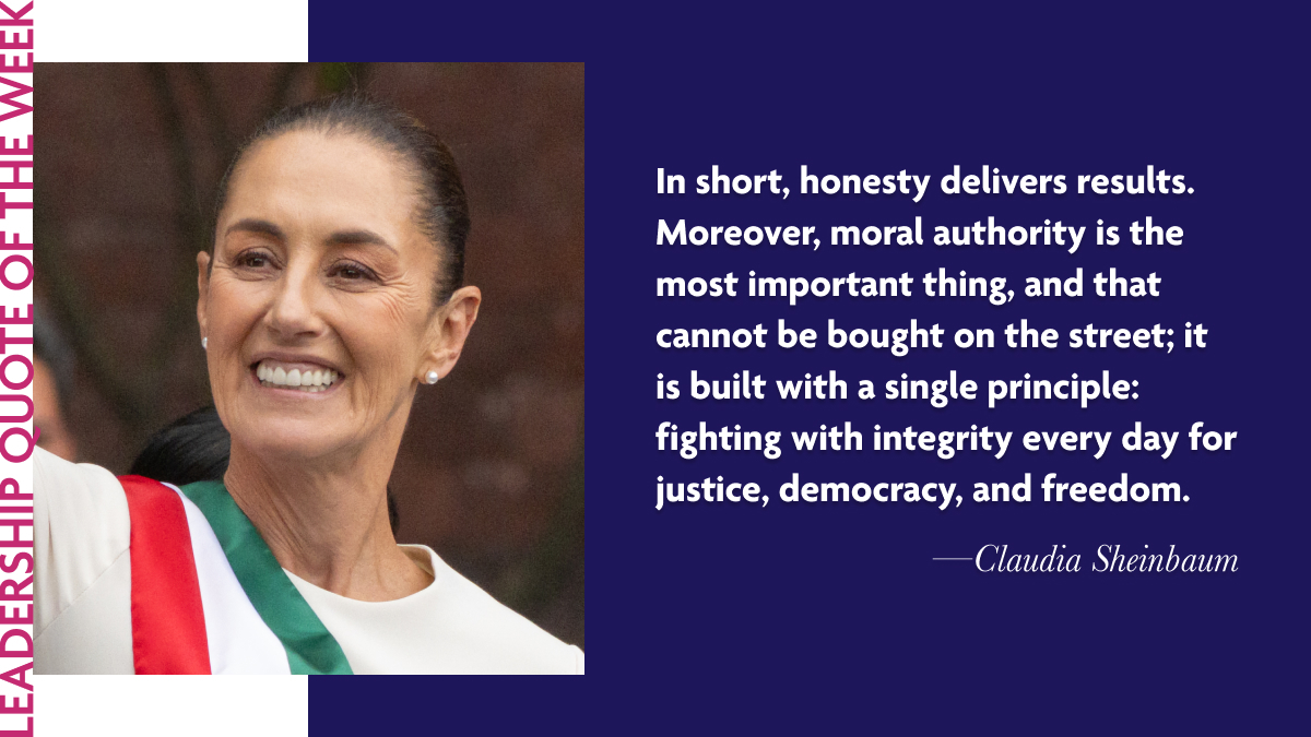 As we reflect on Claudia Sheinbaum’s historic achievement, we can ask ourselves: how are we building moral authority in our leadership? Are we leading with integrity, honesty, and a commitment to justice every day?