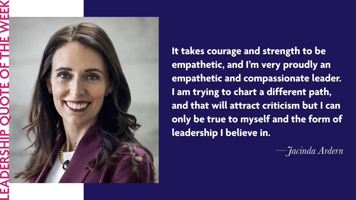 "It takes courage and strength to be empathetic, and I'm very proudly an empathetic and compassionate leader. I am trying to chart a different path, and that will attract criticism but I can only be true to myself and the form of leadership I believe in." Jacinda Ardern