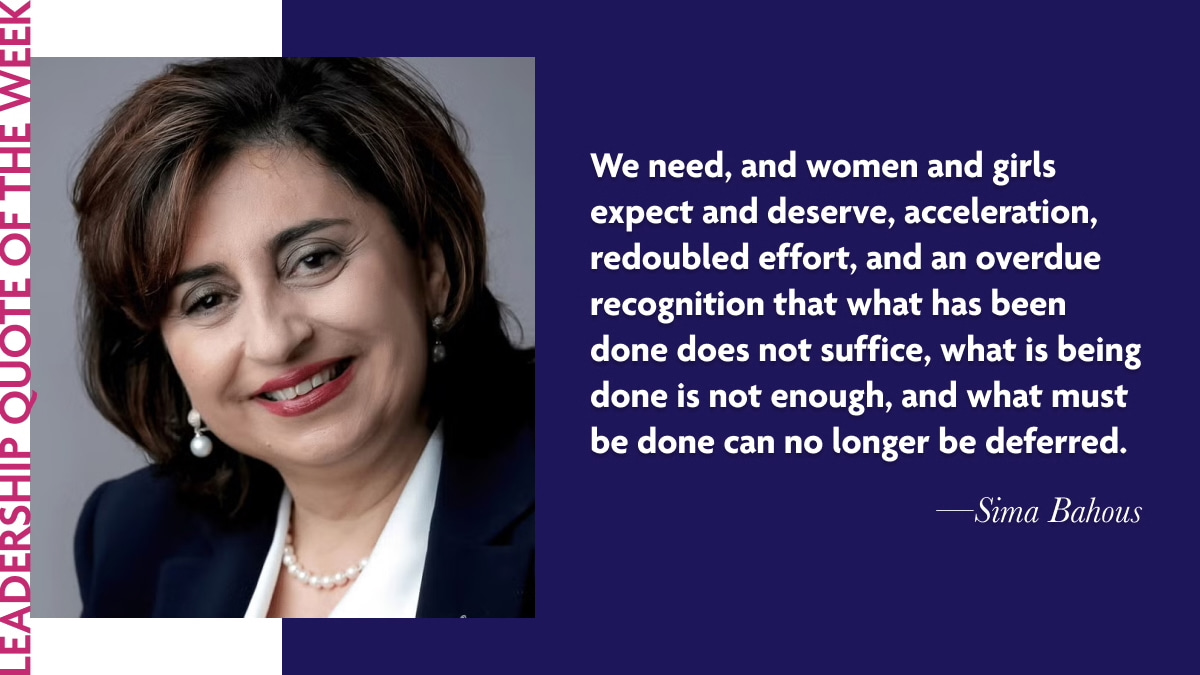 "We need, and women and girls expect and deserve, acceleration, redoubled effort, and an overdue recognition that what has been done does not suffice, what is being done is not enough, and what must be done can no longer be deferred." Sima Bahous