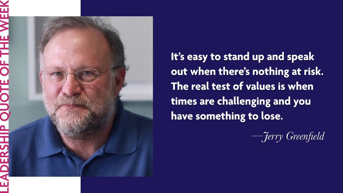 Jerry Greenfield: “It’s easy to stand up and speak out when there’s nothing at risk. The real test of values is when times are challenging and you have something to lose.”