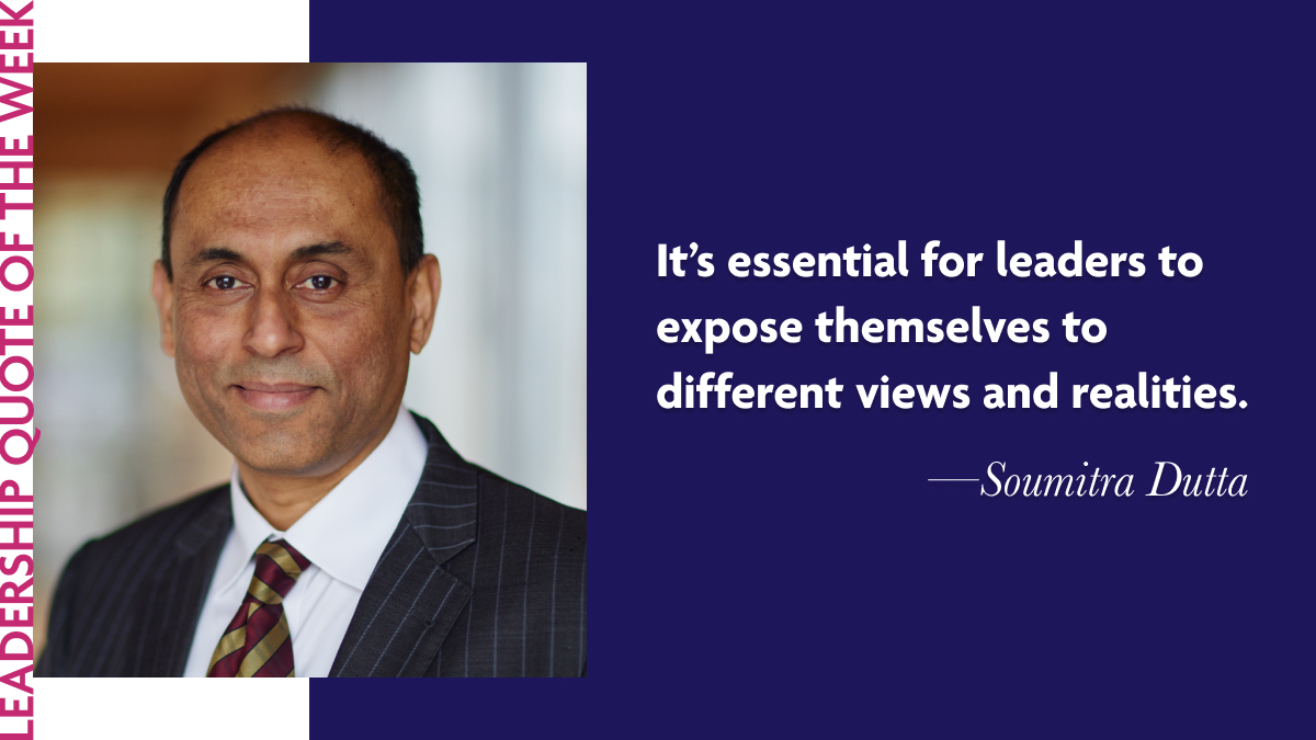 In his Leadership Lab interview, Dean Dutta underscored the significance of residing in a foreign country with a distinct culture from one's own. He highlighted that those granted this opportunity can experience profound personal and professional growth through the challenges of discomfort, fostering adaptability, and cultivating open-mindedness. As we navigate complex global challenges on our leadership journey, it is clear from Dutta's words that the ability to understand and integrate diverse viewpoints is not just a skill—it’s a necessity.