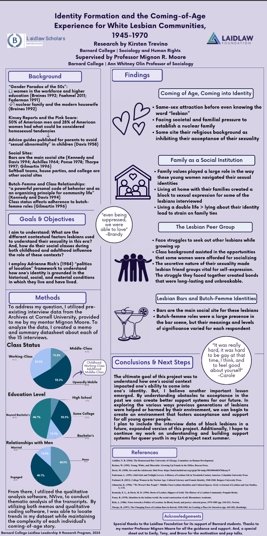 My interests in identity, sexuality, and sociology led me to research the coming-of-age experience and identity formation practices of white lesbian elders who came of age during the post-WWII, Cold War period in Detroit, Michigan, during my first summer.