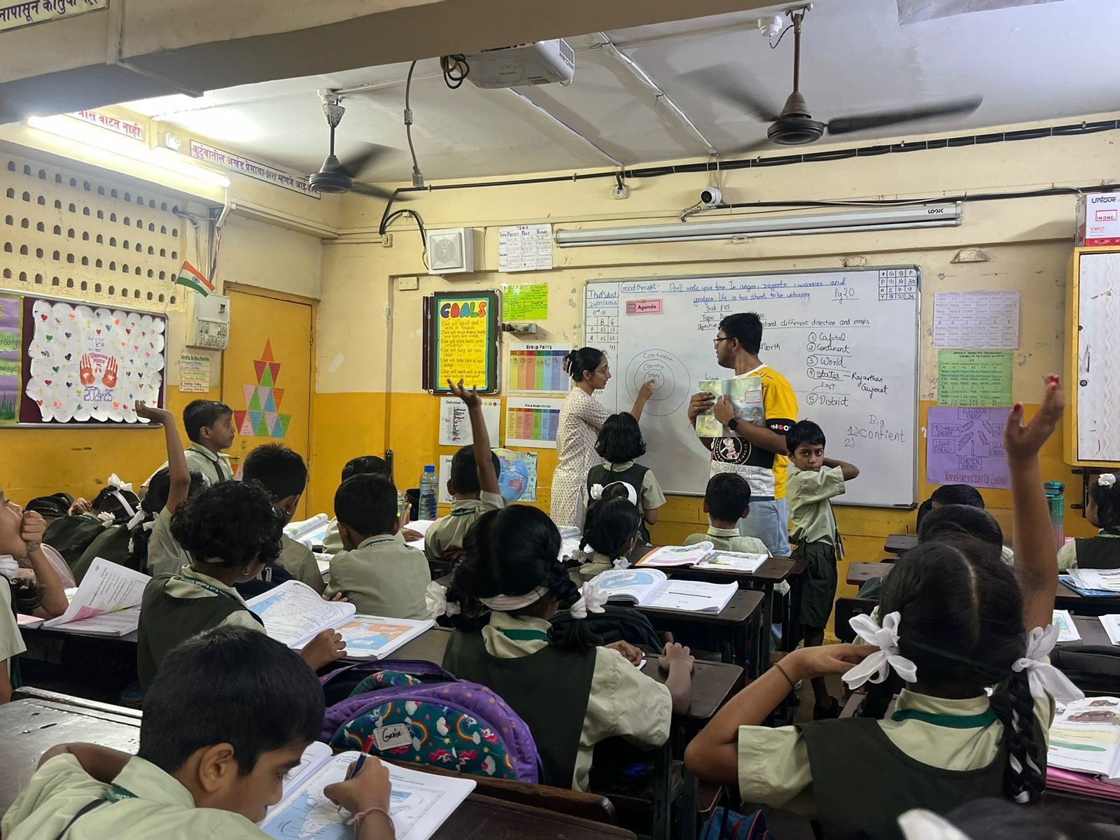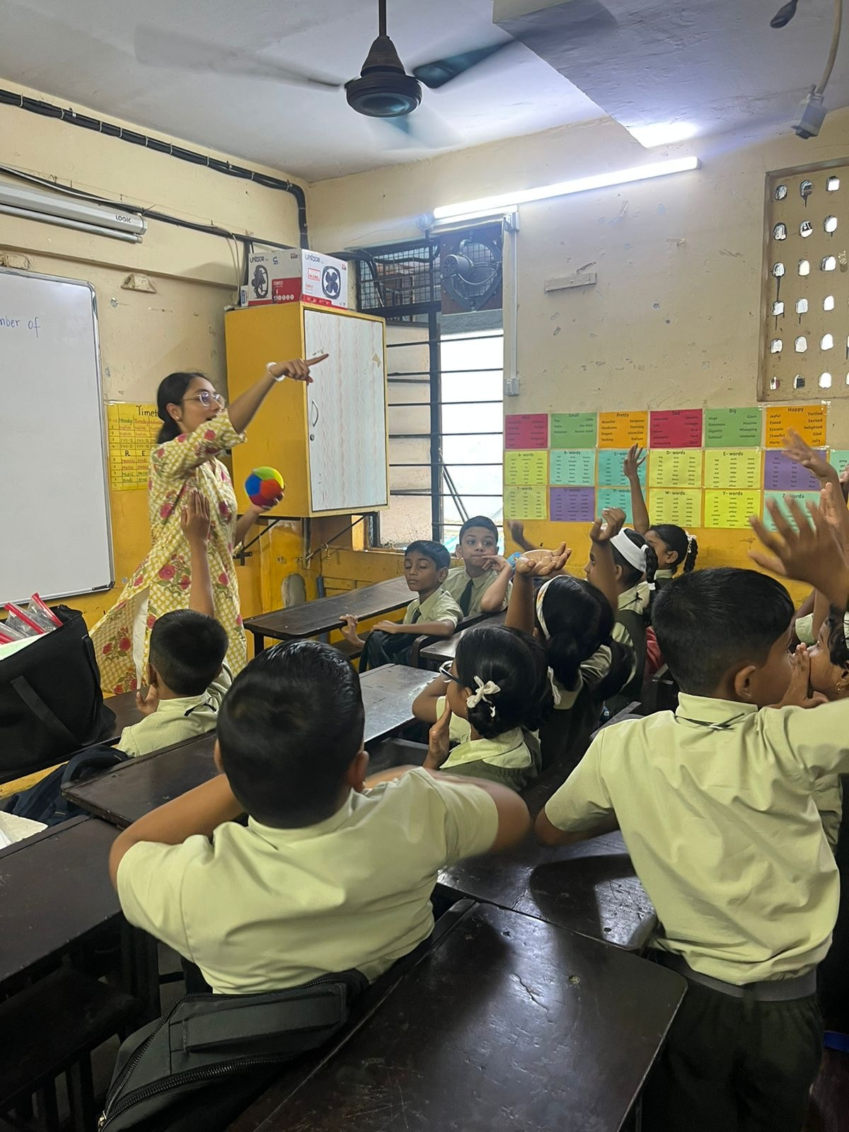 During my volunteering journey, I supported the students in Maths, English, and Environmental Studies. I helped them with numeracy skills, problem-solving, language fluency, reading comprehension, creative writing, and general knowledge. I also supported class read-aloud sessions and helped out with art activities encouraging creativity and self-expression. We tailored the lessons to different learning levels by organising separate group activities — for example, with the support of other volunteers, we conducted additional sessions for students who were struggling, helping them strengthen their foundational knowledge. We used props and interactive activities which were highly effective for encouraging participation, critical thinking, and creativity.