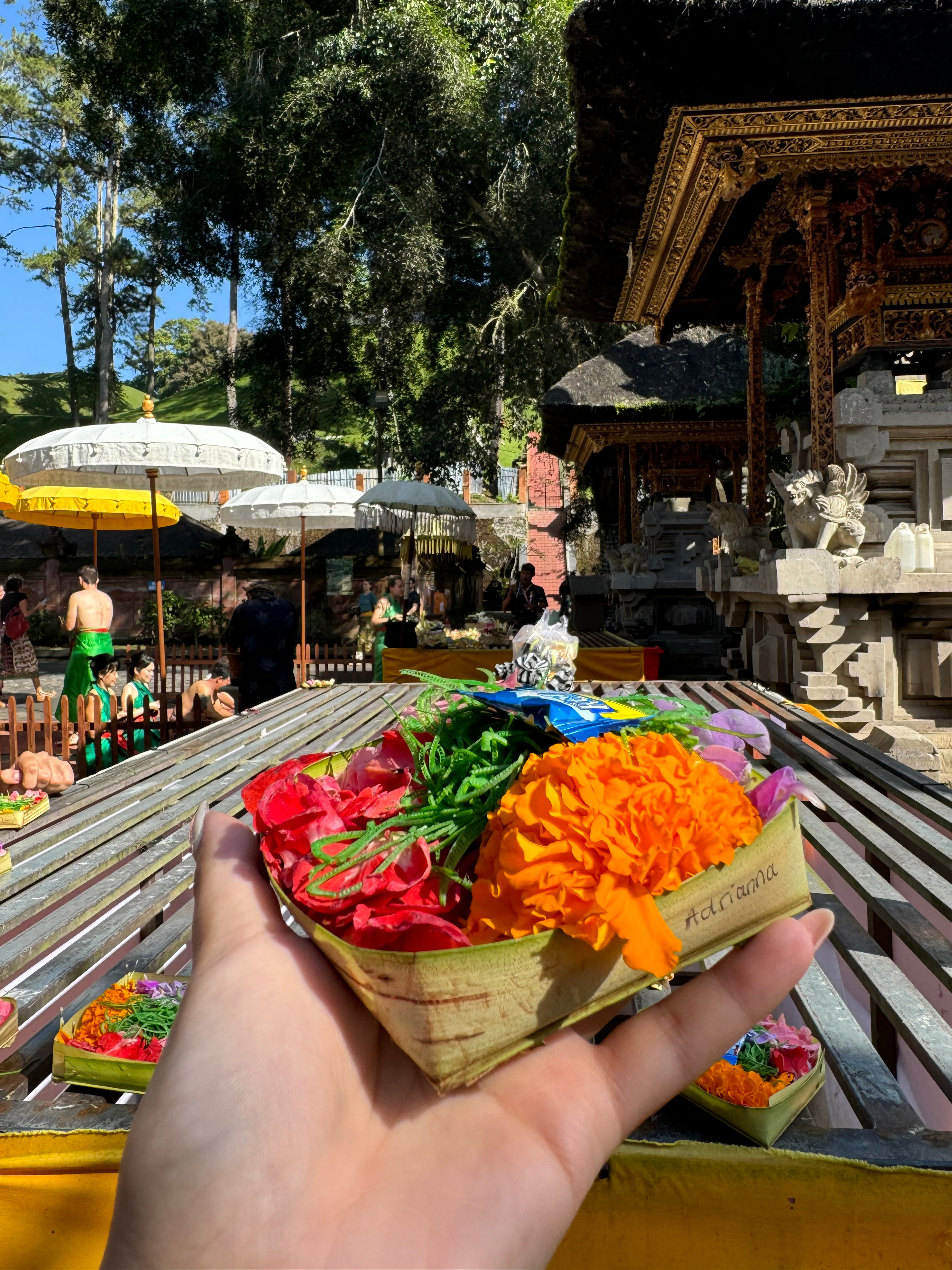 Beyond my work in the classroom, my cultural immersion in Bali provided invaluable insights. Participating in traditional ceremonies, such as the holy water cleansing at Tirta Empul, deepened my appreciation for the spiritual significance of purification rituals. Observing daily canang sari offerings reinforced the importance of gratitude and mindfulness in Balinese culture.