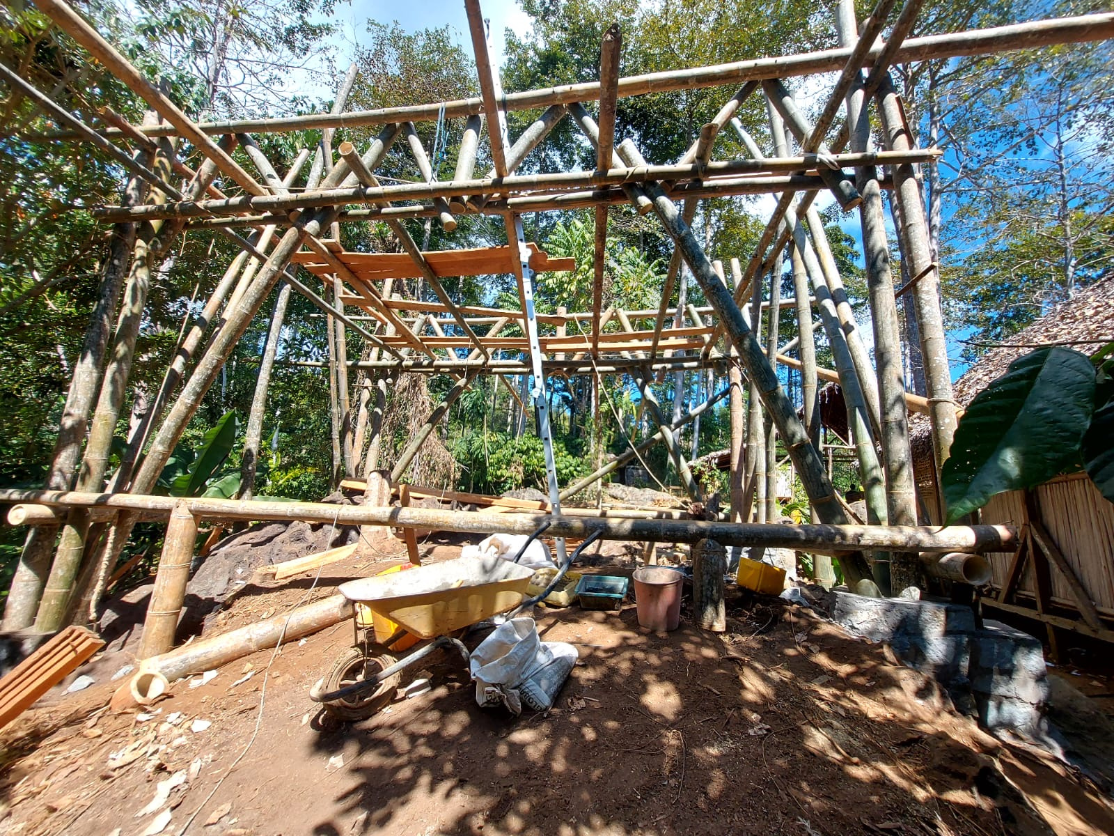When I wasn’t working on the school’s English curriculum, I helped with a few agricultural tasks but mainly worked with Akiba’s construction team. In the six weeks I was there, the team built two new classrooms and renovated the other four classrooms to get them ready for the next school year. I helped put up walls made of ravenala, the quintessential palm from which most structures are made in the region. I also planed down the floorboards in the new preschool classroom and painted all the blackboards and school tables. Working with the construction team was extremely inspiring and fascinating. The team had innovative ways of building the framework of these large classrooms using very limited tools and only local, ecological materials. They were also extremely skillful in handling carpentry tools and climbing precarious bamboo scaffolding, and I learned a great deal about traditional and sustainable building methods from them.