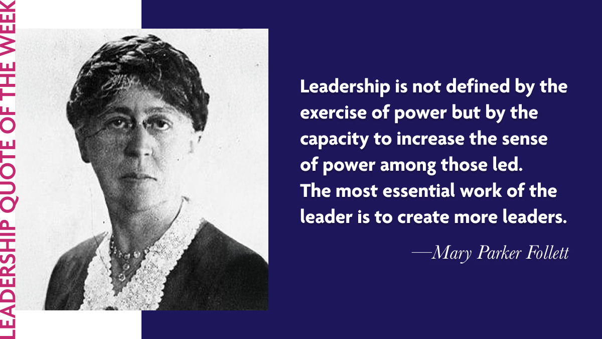 Mary Parker Follett: "Leadership is not defined by the exercise of power but by the capacity to increase the sense of power among those led. The most essential work of the leader is to create more leaders."