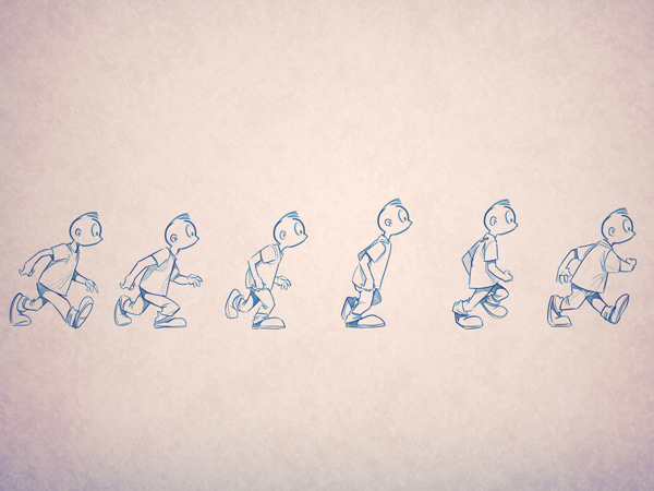 I wanted to give my lessons a strong identity and a colourful touch so that the kids would have enjoyed it. At least, I needed to create an original animated intro and outro. Again, I did not know how. I could feel the fear again, but I cracked on. I had never used any video tools or animation software before, but I remembered about the animation technique that Disney used before computer animation began. In brief, with this technique, animators drew sequences of animation by drawing each frame separately by hand, with enough frames to get across the key positions of an action. By presenting each of these frames in sequence very quickly the drawings are brought to life as in the GIF below showing the little man walking. Because this was all I knew about transforming static images into animated videos, I applied the same logic to my STEAM PowerPoints template. It took me ages, but it did the job.