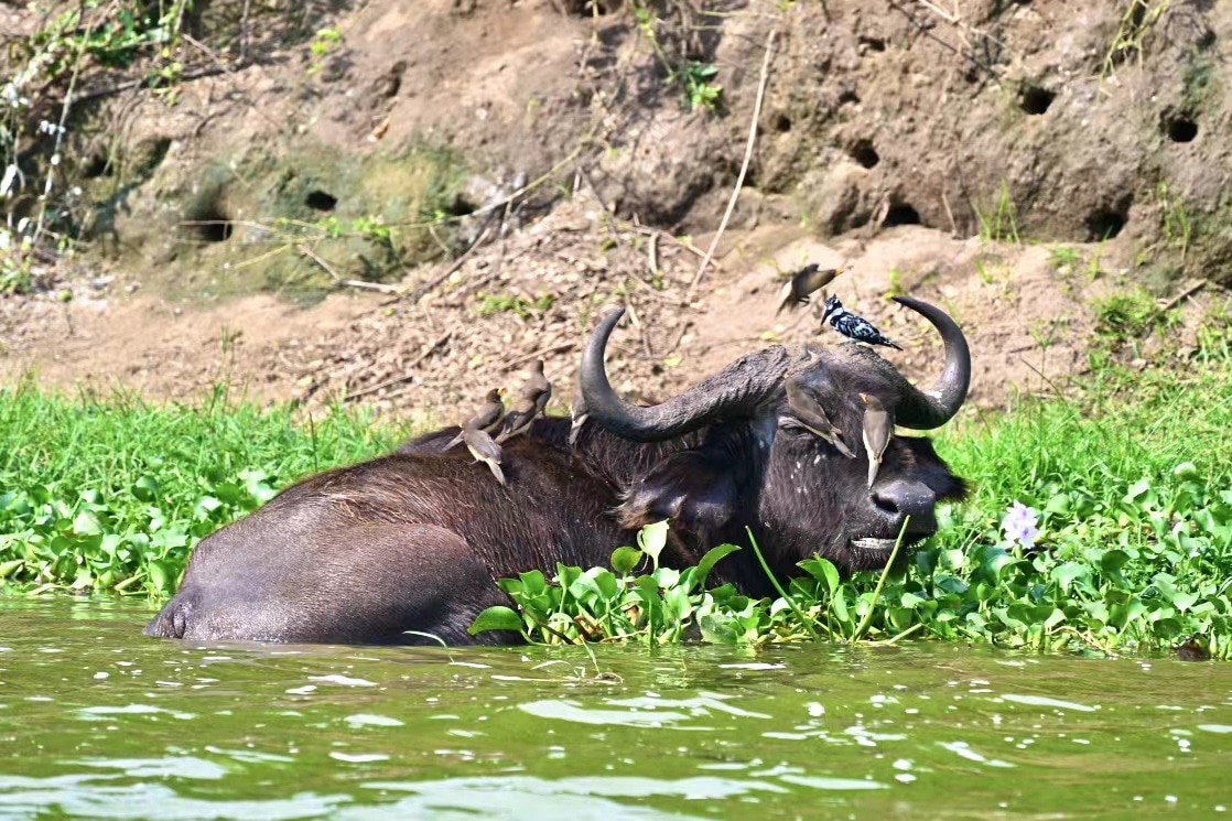 Despite that setback, the adventure was unforgettable! With Gorret, Isaac, and Shami joining us, we crossed the equator and captured memorable photos. Inside the park, we embarked on a game drive led by Natasha, a park ranger who shared fascinating insights. We encountered hippos, water buffalo, antelope, African Savannah elephants, warthogs, and a variety of birds. Although we briefly waited for a leopard, we had to move on to catch our boat cruise.