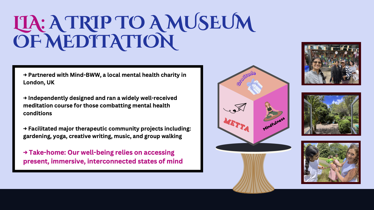 Hi everyone! I am a first-year undergraduate student at the University of Toronto. My primary academic interests include the science of well-being, philosophy of mind, and subjective impacts of contemplative traditions. My research project surrounds how Buddhist-inspired meditation practices impact the phenomenology of experienced meditations, specifically their sense of self, objecthood, and command over their emotion.