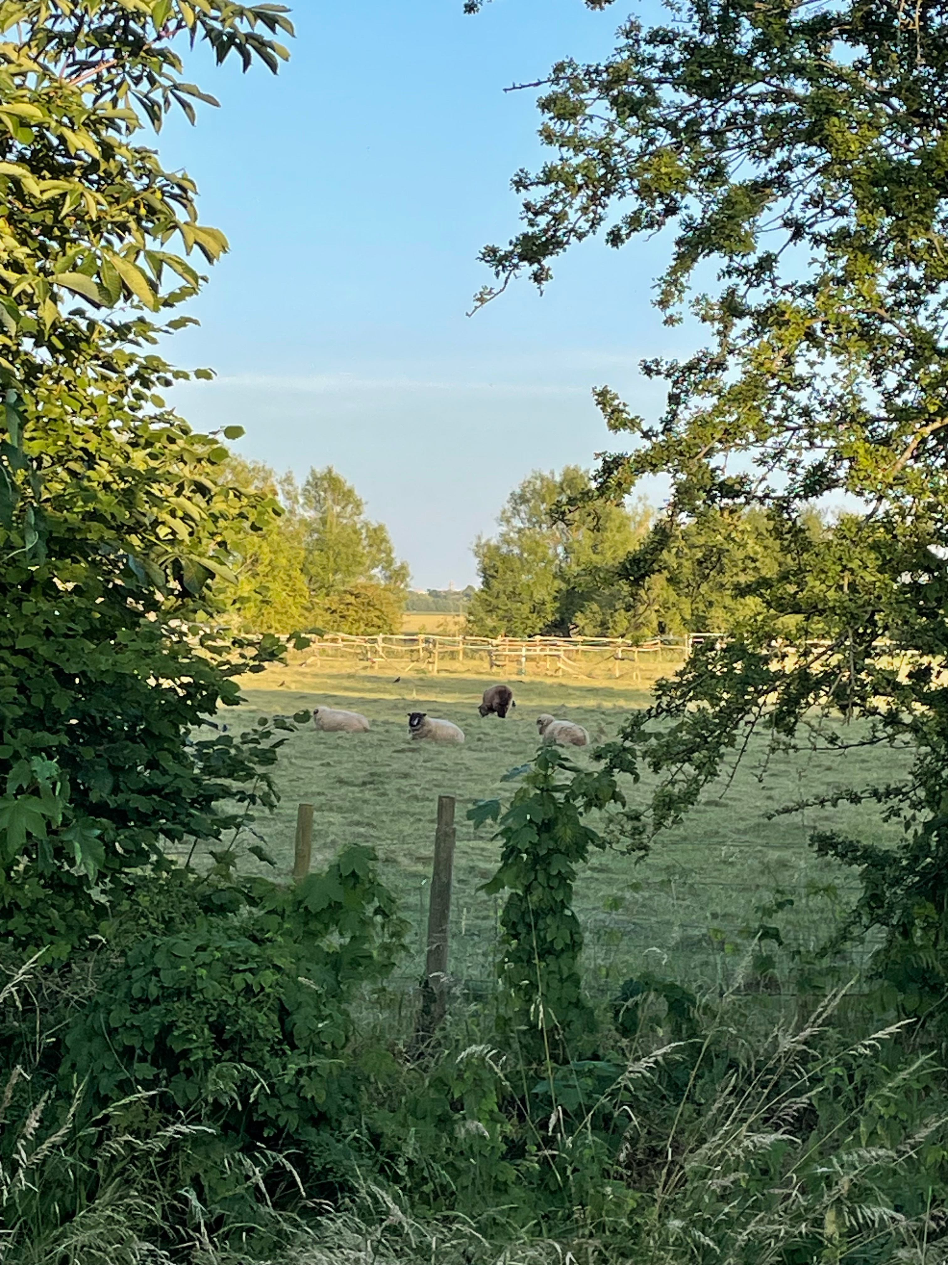Here is an attached photo of my first time seeing sheep on walks while contemplating my work this summer!