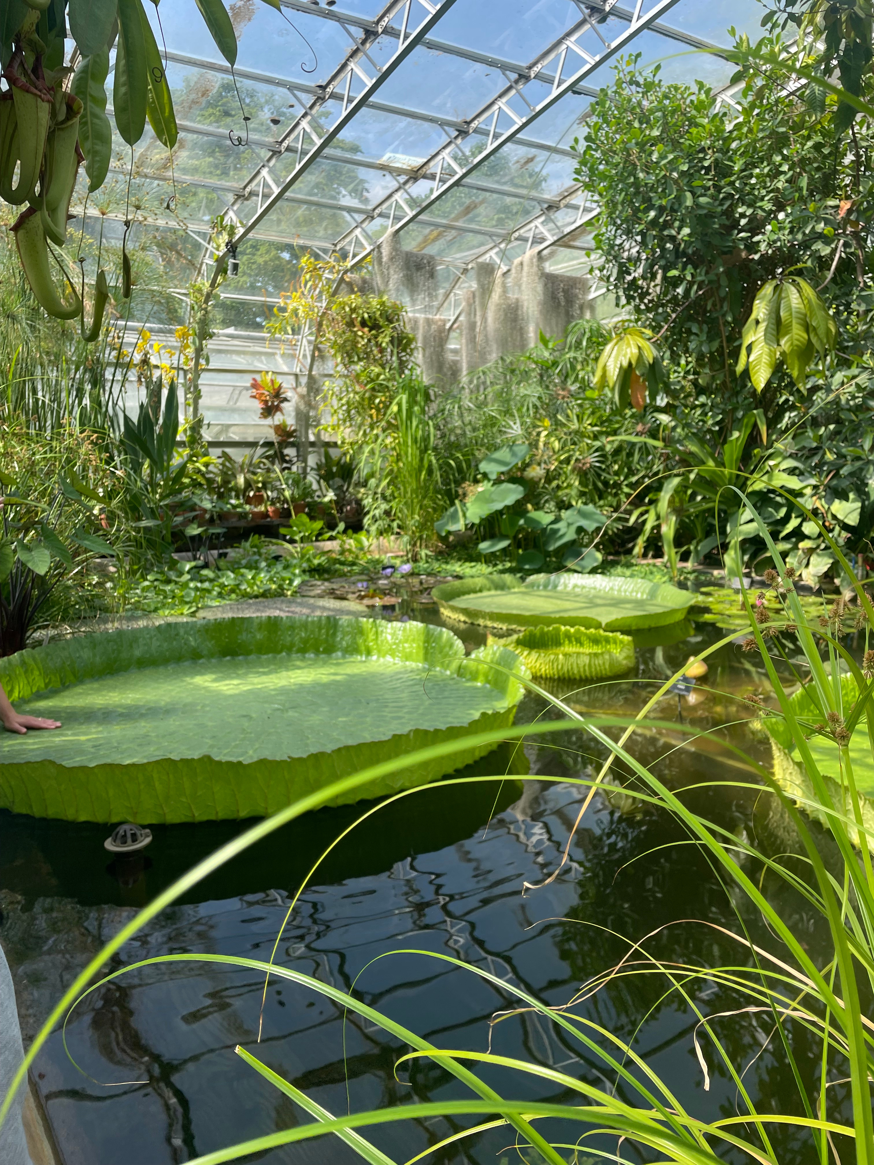 In particular, I have relished in traveling to all the bookstores, cafes, gardens, and viewing the beautiful architecture (especially as an art history fanatic). Attached below is an image of my favorite bookstore here, Blackwells, the Christ Church dining hall where they filmed Harry Potter, a cyanotype I created at the Arboretum, wild Horses in Port Meadow, and a large lily pad in the Oxford Botanical Garden.