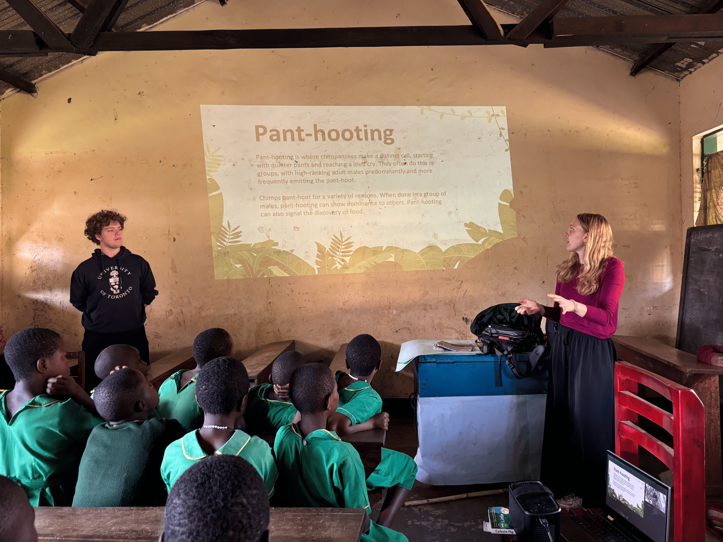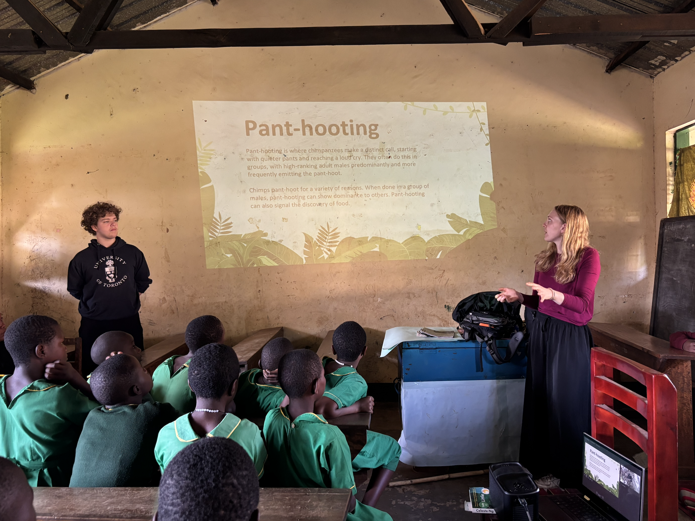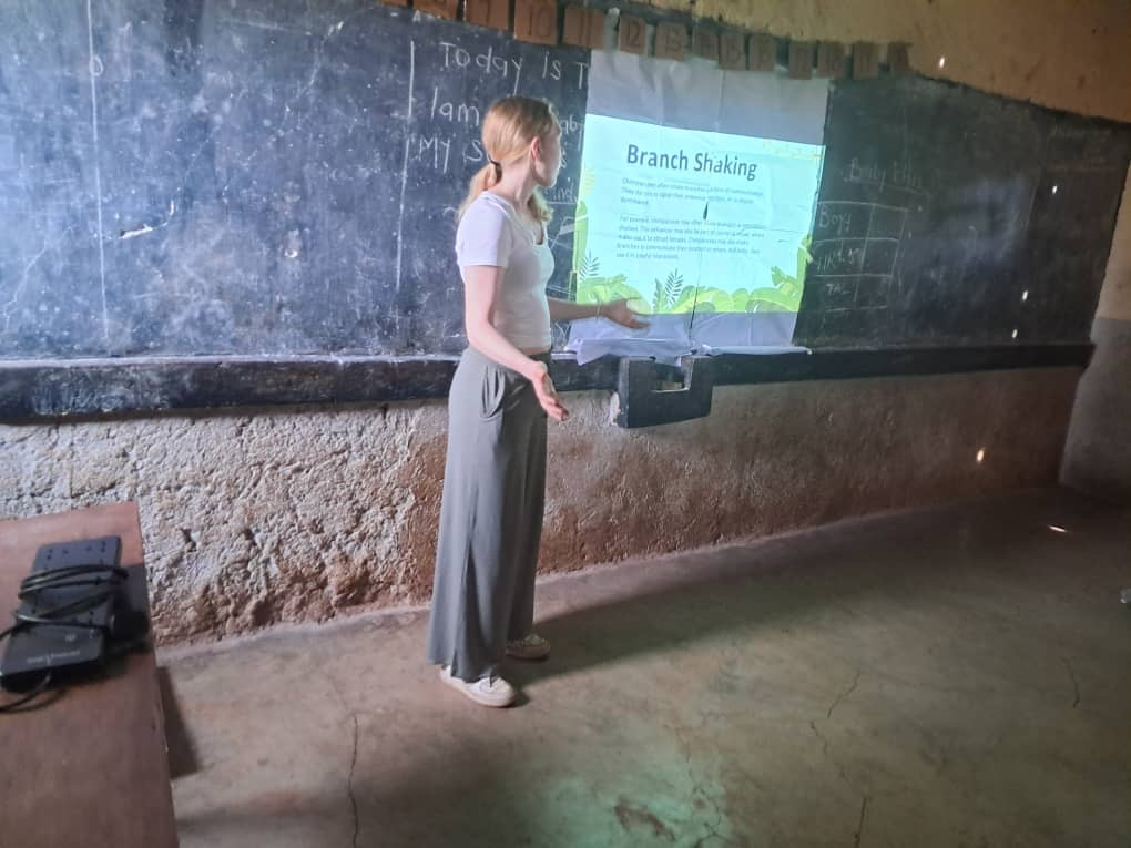 After lunch, I headed out with Kenneth and Luke to visit another primary school for World Chimp Week preparations. This visit was not as smooth as our last due to a late start and some technology issues, but we adapted and had a great time in the process. The cutest little boy even sat on my lap during the short film screening!