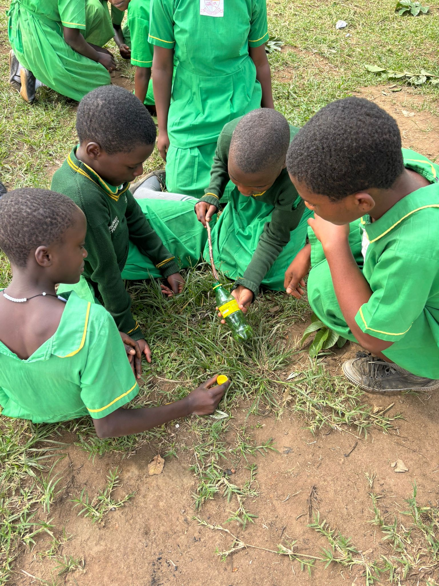 Tuesday, July 1st: Our first day of school visits and Kenneth's birthday (CE team faculty member)! There was not much CE work to be done this morning because the materials we needed to prep our Tooling Around game still had not arrived. The honey actually did not show up until 30 minutes before we had to leave (poli-poli), so we had to rush to put the game together. We had all the scholars helping us and stuffing water bottles with leaves and honey (to up the difficulty of getting the honey out), only to find out the leaves were poisonous, whoops! We didn't have time to take out the leaves, so we all had to agree not to let any of the kids eat any of the honey.