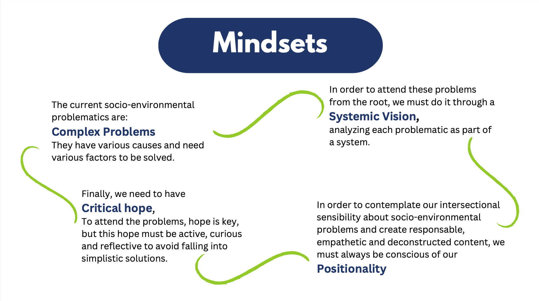 We also learned a lot from experience about addressing complex problems from a systematic vision, reflecting on our positionalities, and having critical hope.