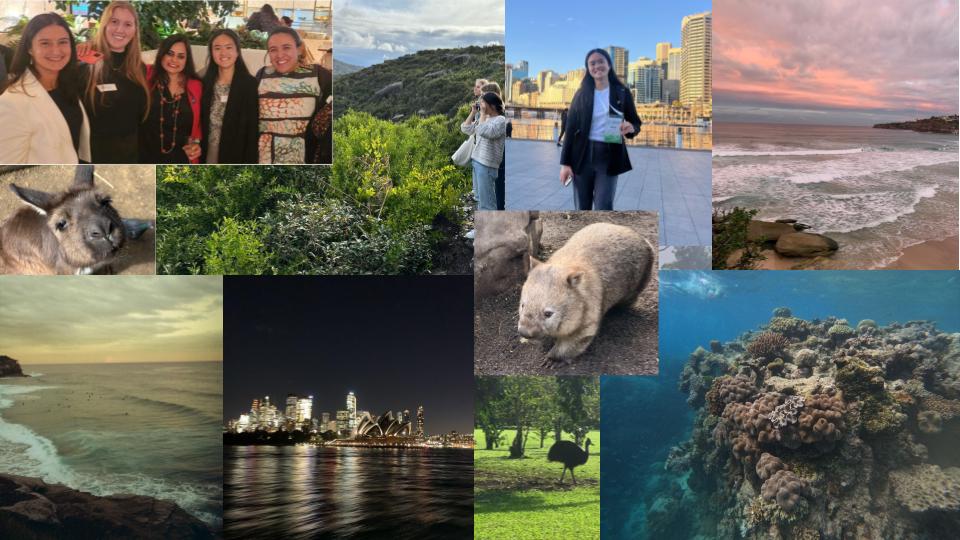 Here are some photos I took! The collage includes pictures of the IDIE team, me at the Global Health Security Conference, views from the Bondi to Coogee walk and Palm Beach, the Sydney Opera House, Australian animals I saw (kangaroo, wombat, cassowary), and the Great Barrier Reef.